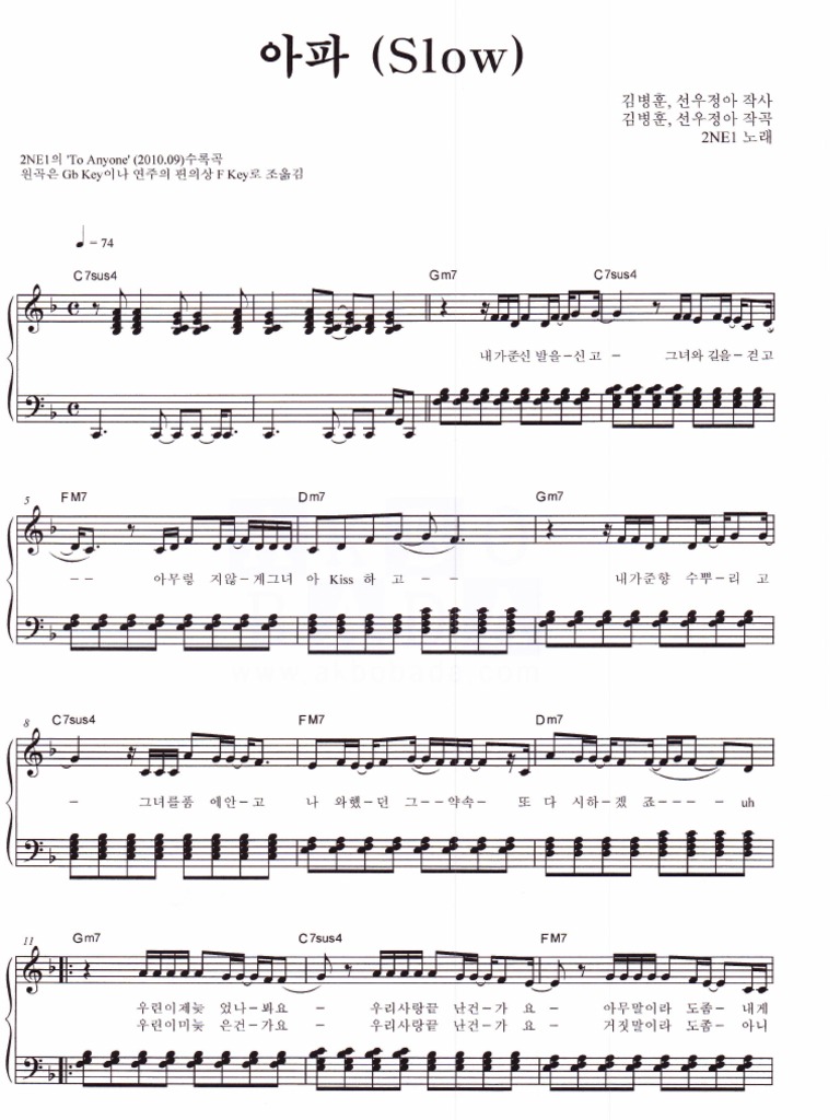 2NE1 has released acoustic collaboration with popular Korean guitarist Jung Sungha. Chords ratings diagrams and lyrics. No Capo - Start in Am Intro Am C F Am C F Verse 1 Am C geureoke neomu pyeonhage F gulji mayo Am C F ajik neowa nan namnaminikka Am C eorinaecheoreom bochaeji F jom mayo Am C F ajik shijakdo an haesseunikka Pre-chorus Dm Am aideure buljangnan G gateun.